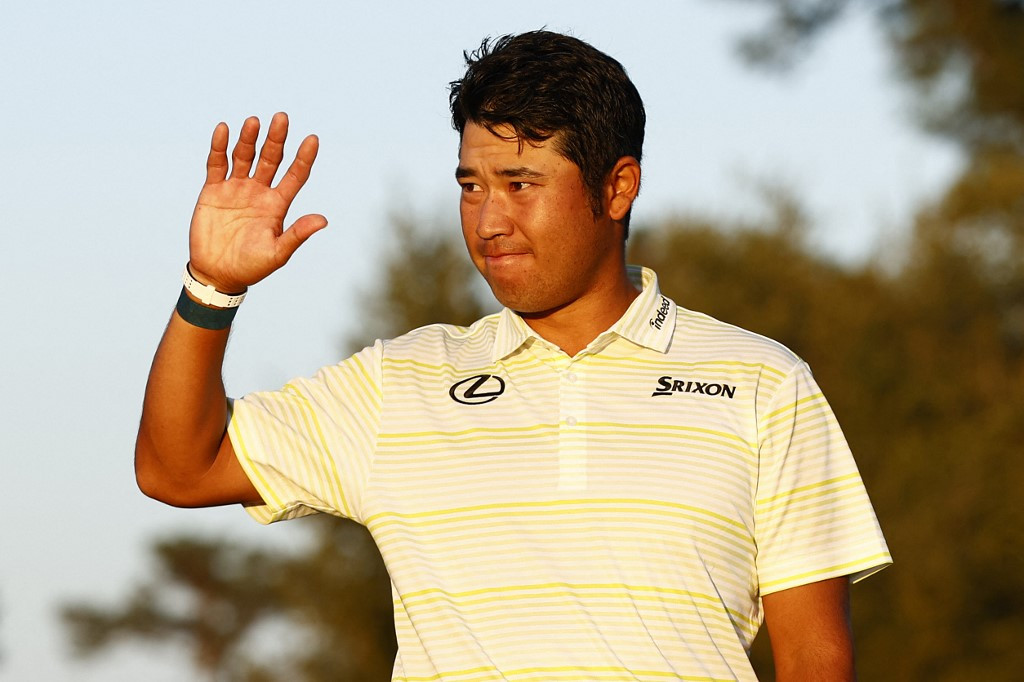 AUGUSTA, GEORGIA - APRIL 11: Hideki Matsuyama of Japan celebrates during the Green Jacket Ceremony after winning the Masters at Augusta National Golf